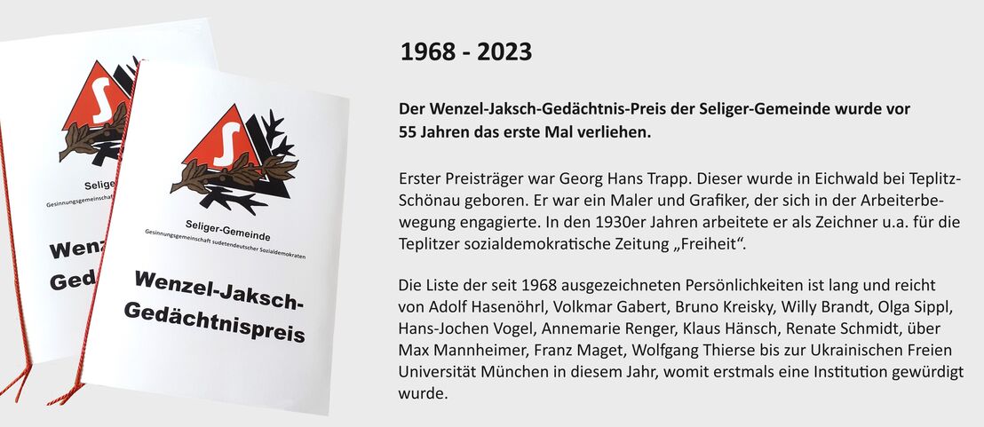Wenzel-Jaksch-Gedächtnis-Preis der Seliger-Gemeinde wurde vor 55 Jahren das erste Mal verliehen