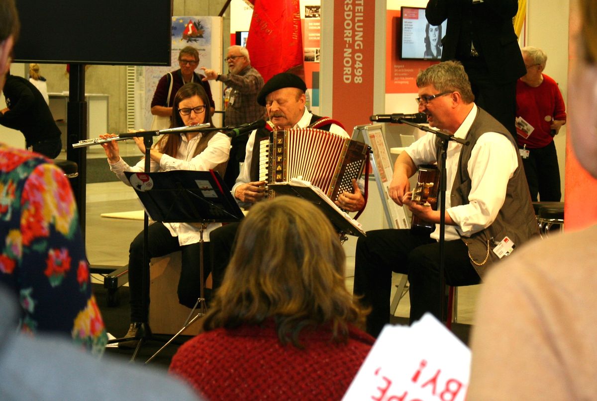 Nicht "Stille Nacht" oder "Leise rieselt der Schnee", sondern "Wann wir schreiten Seit an Seit", "Bella ciao" oder "Brüder zur Sonne" klang durch die Berliner Messehalle, in der sich die Seliger-Gemeinde um den Wilhelm-Dröscher-Preis 2017 bewarb. Es reichte zwar nicht zu einem Platz auf dem Treppchen, wie man so schön sagt, aber das Bühnenprogramm zur Präsentation einmalig und bleibt unvergessen.