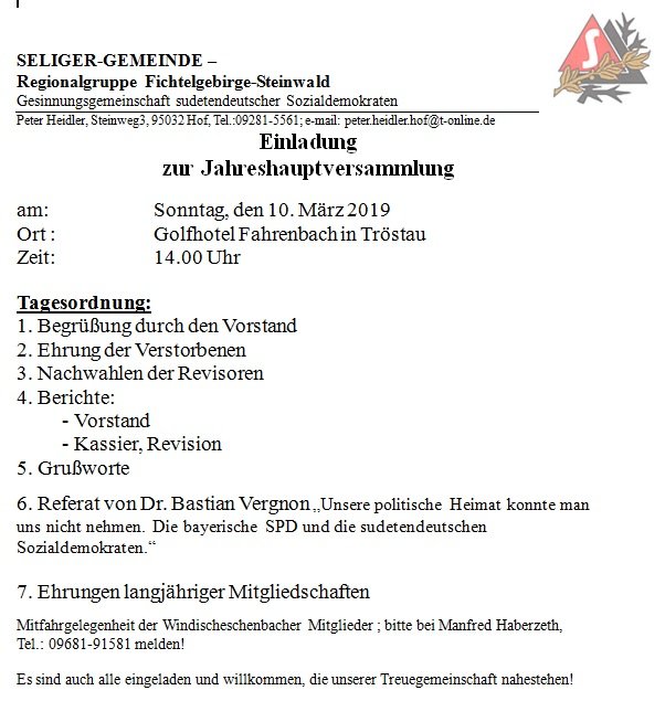 Einladung zur Jahreshauptversammlung