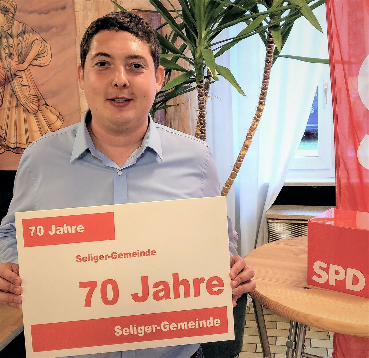Geburtstagsgrüße zu "70 Jahre Seliger-Gemeinde" vom neuen Traunsteiner SPD-Unterbezirksvorsitzenden Sepp Parzinger (Gewerkschaftssekretär DGB Bayern - Region Oberbayern)
