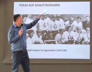 Einen besonderen Blick warf Filip Bláha auf die Geschichte des Eishockeys in Kladno, die eng mit dem Verein Poldi Kladno und dem Aufstieg der Spieler Jaromír Jágr oder Milan Nový verbunden ist.