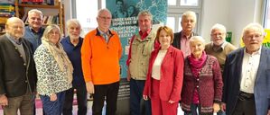 Die neue Vorstandschaft des Seliger-Gemeinde Landesverbandes Bayern: Vorsitzender Herbert Schmid (Mitte), die Stellvertreter/in Anita Berek (5.v.re.) und Harald Zahel (5. V.li.), Kassier Peter-Schmid Rannetsperger (2.v.li.), Schriftführer Gerhard Barenbrügge (2.v.re.), die Revisorin Walburga Steffan (3.v.re.) sowie die Beisitzer Peter (li.) und Renate (3.v.li.) Heidler, Peter Wesselowsky (4.v.l.), Klaus Adelt, (re.) und Reinhold Strobl (4.v.re.)