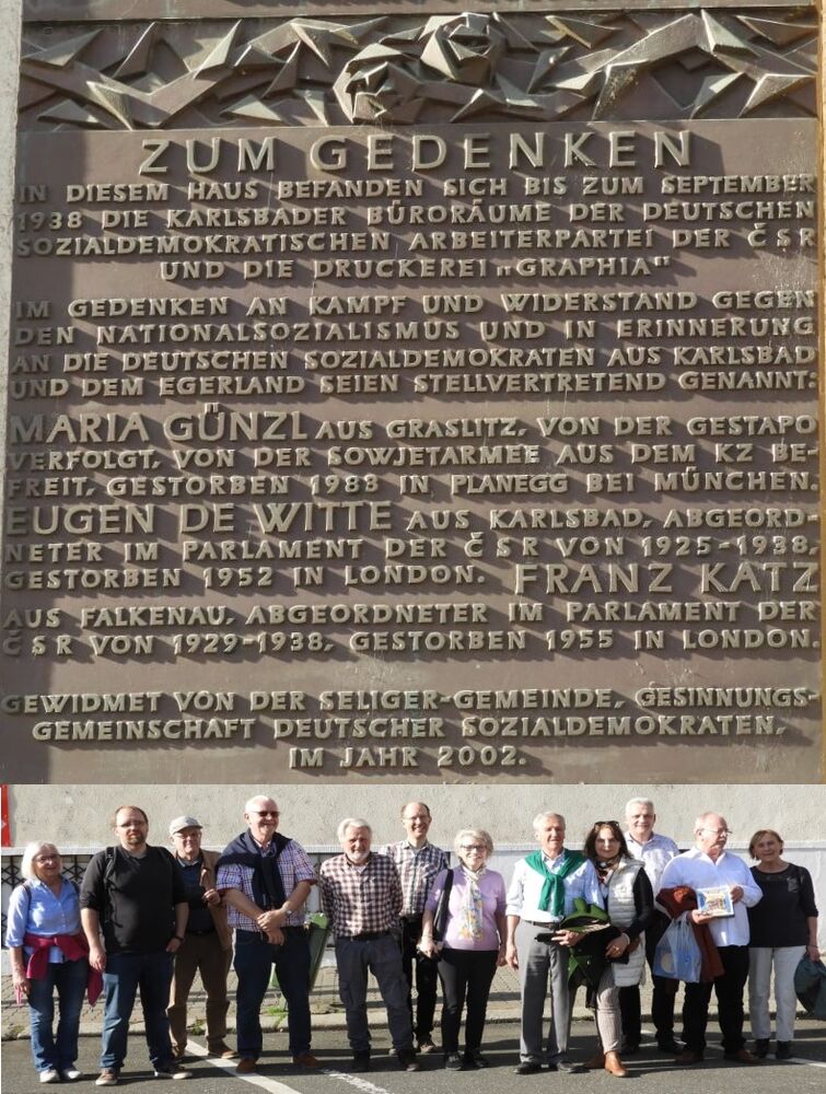 Auf dem Weg zum Kreismuseum und zurück konnte die frühsommerliche Atmosphäre der Kurstadt erlebt werden. Natürlich gehörte dazu auch ein Abstecher zum Sitz der ehemaligen Druck- und Verlagsanstalt GmbH „Graphia“. Die „Graphia“ wurde mit dem Jahr 1933 zum „Exilverlag der reichsdeutschen Sozialdemokratie“. Hier hatte Volkmar Gabert noch 2002 eine Gedenktafel anbringen lassen.
