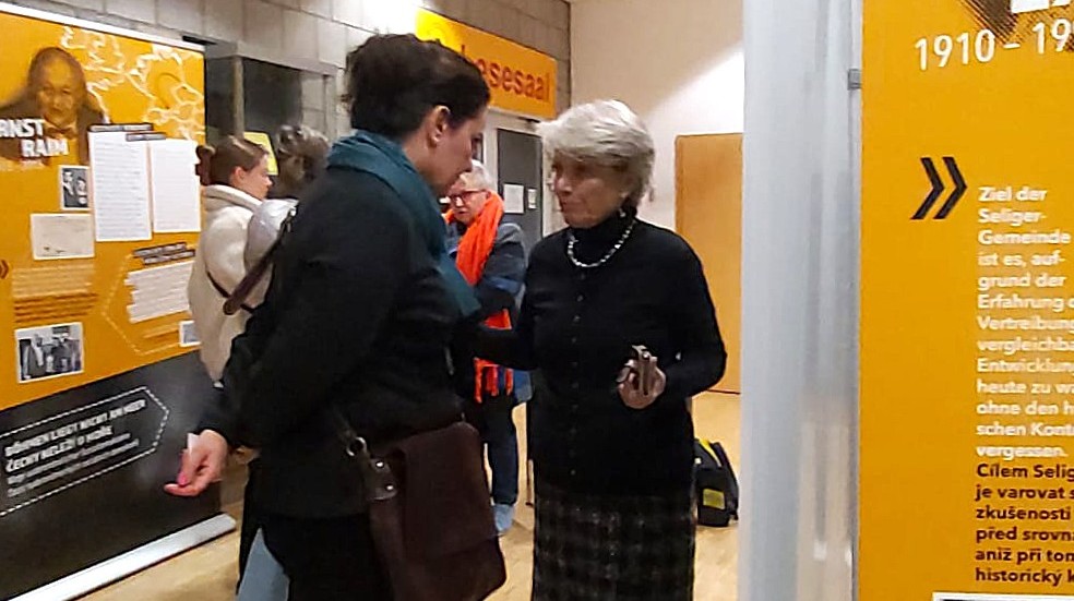 Am 13.02.2025 fand die Eröffnung der Ausstellung „Böhmen liegt nicht am Meer- Lebenswege sudetendeutscher Sozialdemokraten” in der MOB mit einem Grußwort der Tschechischen Generalkonsulin, Frau Kristina Larischová, statt. Eindrucksvoll wurden von Ihr und der Bundesvorsitzenden der Seliger-Gemeinde, Helena Päßler, an die Leiden von sudetendeutschen Sozialdemokratinnen und -demokraten erinnert, die in der ersten Tschechoslowakischen Republik aktiv waren und durch die Nationalsozialisten verfolgt und zum Teil ermordet wurden. Auch die Leiden der folgenden Vertreibung aus ihrer Heimat wurden dargestellt.