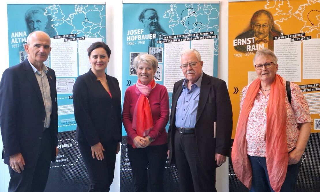 Freuten sich über eine gelungene Präsentation: v.l. Prof. Dr. Winfrid Halder, Direktor der Stiftung Gerhart-Hauptmann-Haus in Düsseldorf, Kristina Larischová, Generalkonsulin der Tschechischen Republik, Helena Päßler, Bundesvorsitzende der Seliger-Gemeinde, Reinhard Grätz, Vorsitzender des Kuratoriums der Stiftung Gerhart-Hauptmann-Haus in Düsseldorf sowie Ausstellungsbetreuerin Erika Kalkofen-Frahne.