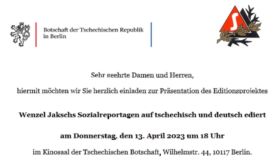 Nach Jahren der Pandemie, die eine Vorstellung des Buches verunmöglichte, stellt die Tschechische Botschaft in Berlin dieses einzigartige tschechisch-deutsche Editionsprojekt vor. In einem Gespräch mit dem Sohn Wenzel Jakschs, den in London 1945 geborenen Georg Jaksch, der in Wiesbaden aufwuchs, wo er heute wieder im väterlichen Haus lebt, sollen die späte Renaissance einer vergessenen Leistung beleuchtet werden.