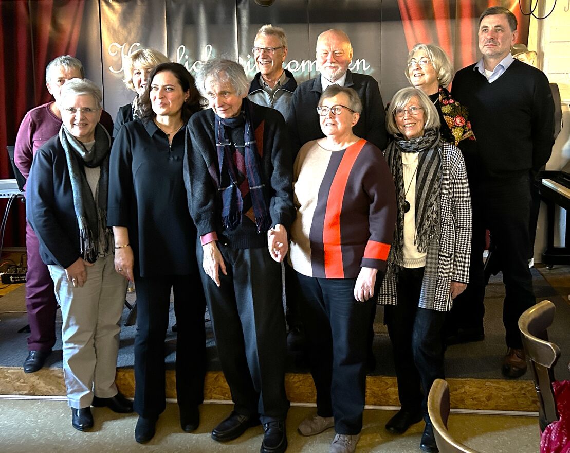 untere Reihe (v.l.): 1 Gründungsmitglied Gerda E.H. KOCH, Frau Konsulin Kristina LARISCHOVÀ, Dr. Ulrich GROCHTMANN, Erika KALKOFEN-FRAHNE, Heirun BORKOWSKI (Ehefrau von Dr. Grochtmann) - obere Reihe (v.l.): Roswitha KILLINGER, Jana LUGGENHÖLSCHER (beide Gründungsmitglieder), Wolfgang FRAHNE, Andreas WYSOCKI, Irmtraud RUDER und ihr Ehemann Rychard GRUSCHKA - (Text: Generalkonsulat der Tschechischen Republik in Düsseldorf, Foto: Ralf Neuhaus)