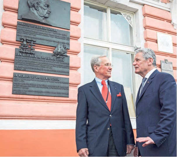 Von MICHAELA MARKSOVÁ, Arbeits- und Sozialministerin der Tschechischen Republik und stellv. Vorsitzende der CSSD Der ehemalige Bundespräsident Joachim Gauck und der Ko-Vorsitzende der Seliger-Gemeinde Dr. Helmut Eikam im Mai 2014 an der Gedenktafel für Ludwig Czech im ehemaligen Konzentrationslager Theresienstadt