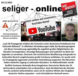 In ihrer letzten Seliger-online Veranstaltung des Jahres befasste sich die Seliger-Gemeinde am 4. Dezember 2025 mit der Nationalsozialistischen Kulturpolitik im Protektorat Böhmen und Mähren. Jeglicher Widerstand wurde mit aller Härte unterdrückt. Dies galt auch für das Protektorat Böhmen und Mähren. Es gab aber hier auch Räume, um sich mit dem nationalsozialistischen Regime zu arrangieren. Besonders deutlich wird dies in der Kultur.