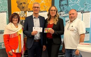 Die Seliger-Gemeinde gratulierte noch vor Ort - Neumitglied Uwe Kirschstein begrüßt