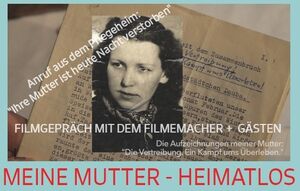 Unser Mitglied und Filmemacher Horst Herz - aufgewachsen in Nürnberg - zeichnet in seiner dokumentarischen Filmerzählung die Lebensgeschichte seiner Mutter die nach dem Ende des 2. Weltkriegs als Folge des Naziterrors - wie drei Millionen Deutschböhmen - sog. "Sudetendeutschen", aus ihrer Heimat in der Tschechischen Republik vertrieben wurde. Der Film steht beispielhaft für eine Generation von Frauen, die mit den seelischen Wunden unverarbeiteter Traumata aus dem 2.Weltkrieg leben mussten und müssen.